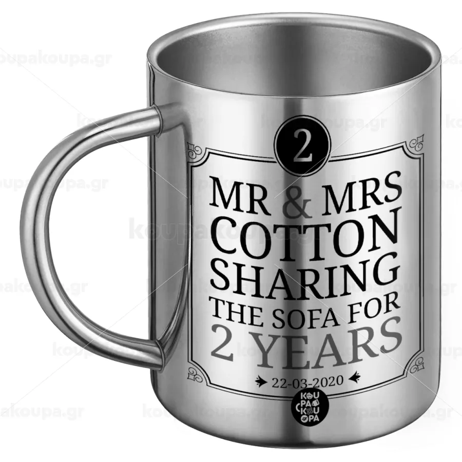 Mr & Mrs Sharing the sofa, Ανοξείδωτη Μεταλλική Κούπα 450ml - Διπλού Τοιχώματος