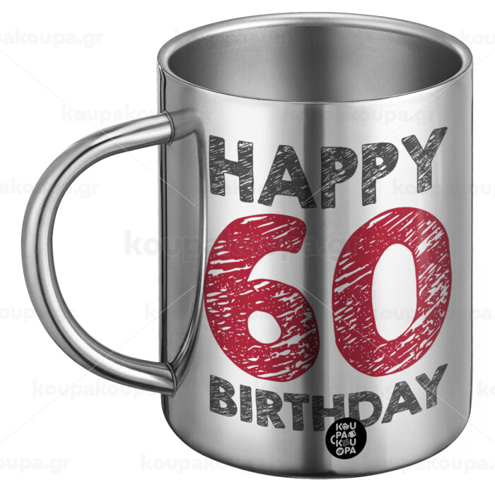 Happy 60 birthday!!!, Ανοξείδωτη Μεταλλική Κούπα 450ml - Διπλού Τοιχώματος