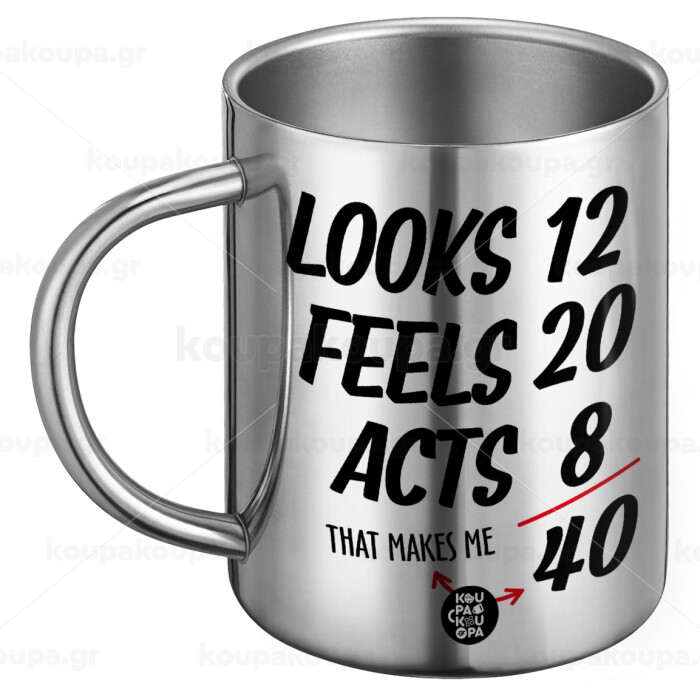 Looks, feels, acts LIKE your AGE, Ανοξείδωτη Μεταλλική Κούπα 450ml - Διπλού Τοιχώματος