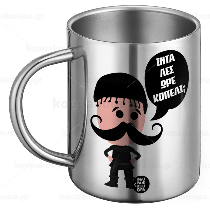 Κρητικός "Ίντα λες ωρέ κοπέλι", Ανοξείδωτη Μεταλλική Κούπα 450ml - Διπλού Τοιχώματος