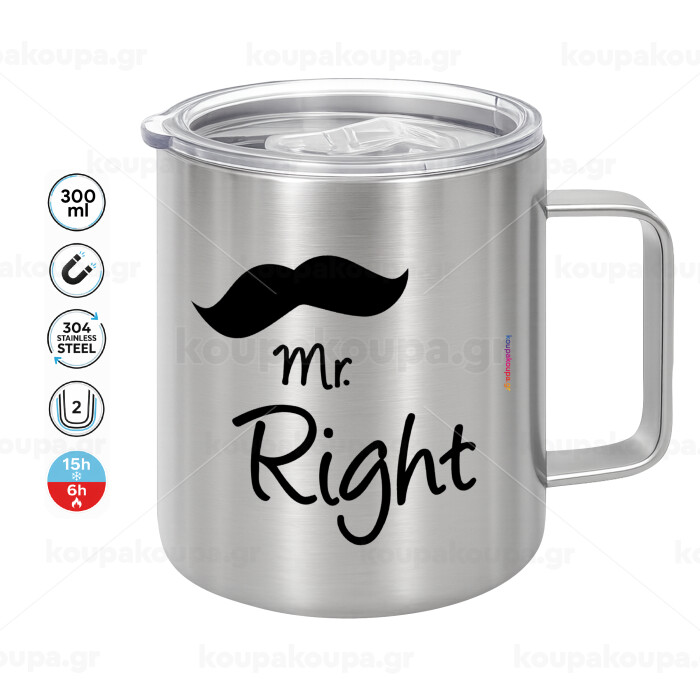 Mr right Mustache, Κούπα Ανοξείδωτη διπλού τοιχώματος 300ml