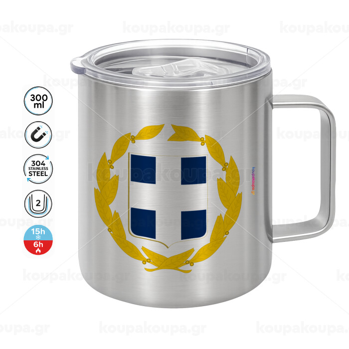 Hellas Εθνόσημο, Κούπα Ανοξείδωτη διπλού τοιχώματος 300ml με καπάκι διατήρησης θερμοκρασίας