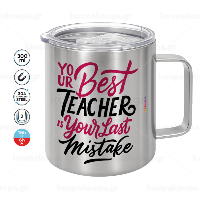 Typography quotes your best teacher is your last mistake, Κούπα Ανοξείδωτη διπλού τοιχώματος 300ml