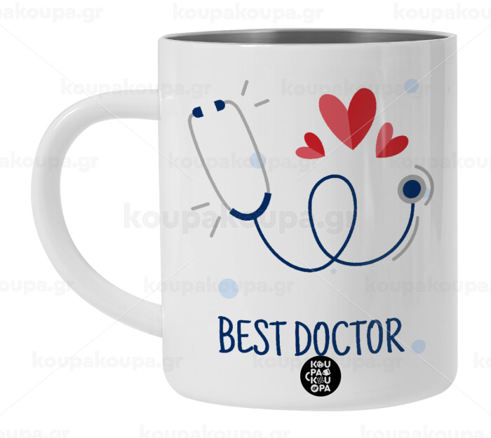 Best Doctor, Λευκή Ανοξείδωτη Μεταλλική Κούπα 450ml - Διπλού Τοιχώματος