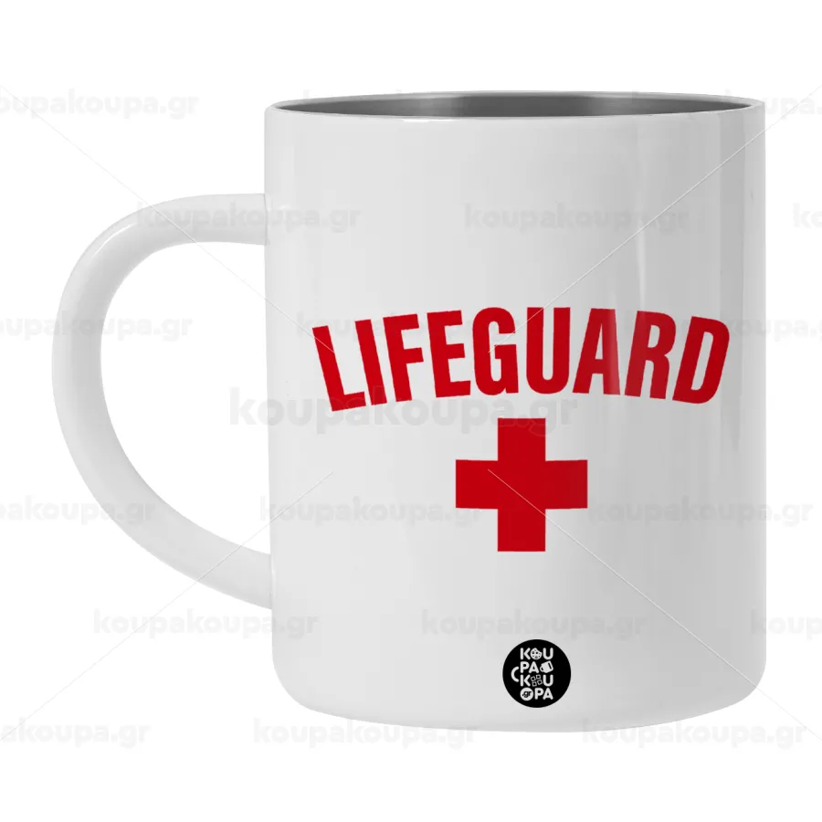 Lifeguard, Λευκή Ανοξείδωτη Μεταλλική Κούπα 450ml - Διπλού Τοιχώματος