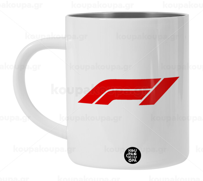 Formula 1, Λευκή Ανοξείδωτη Μεταλλική Κούπα 450ml - Διπλού Τοιχώματος