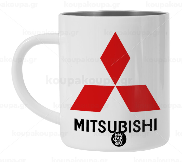 mitsubishi, Λευκή Ανοξείδωτη Μεταλλική Κούπα 450ml - Διπλού Τοιχώματος