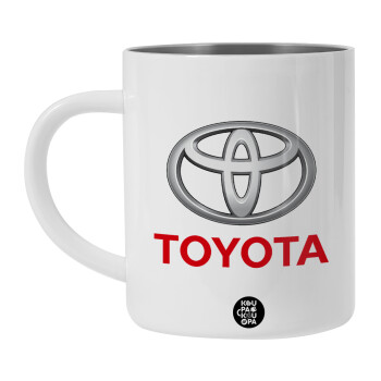 Toyota, Λευκή Ανοξείδωτη Μεταλλική Κούπα 450ml - Διπλού Τοιχώματος