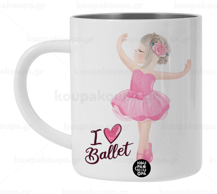 I Love Ballet, Λευκή Ανοξείδωτη Μεταλλική Κούπα 450ml - Διπλού Τοιχώματος