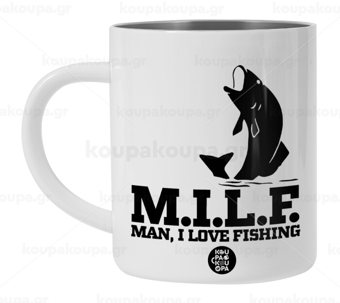 M.I.L.F. Mam i love fishing, Λευκή Ανοξείδωτη Μεταλλική Κούπα 450ml - Διπλού Τοιχώματος