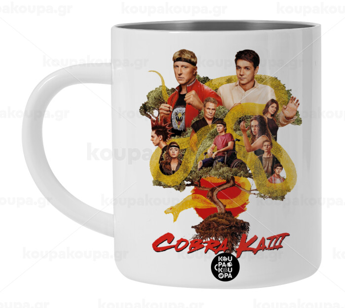 Cobra Kai tree, Λευκή Ανοξείδωτη Μεταλλική Κούπα 450ml - Διπλού Τοιχώματος