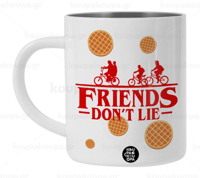 Friends Don't Lie, Stranger Things, Λευκή Ανοξείδωτη Μεταλλική Κούπα 450ml - Διπλού Τοιχώματος