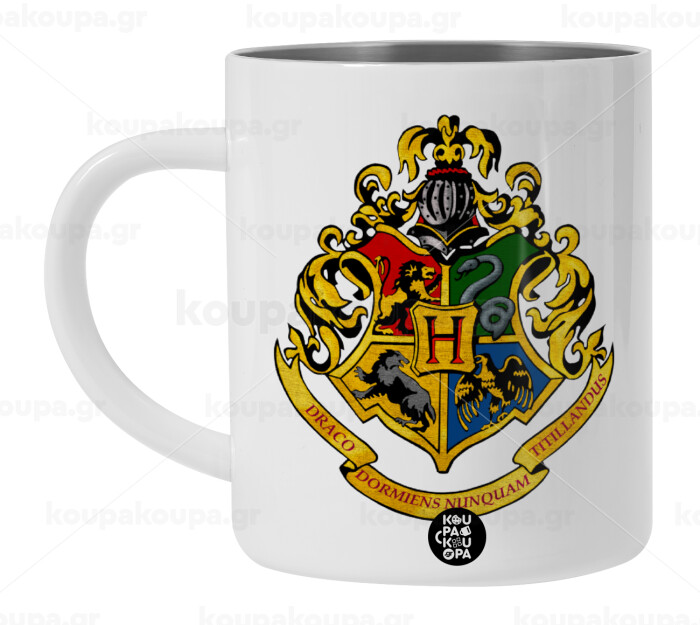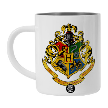 Hogwart's, Λευκή Ανοξείδωτη Μεταλλική Κούπα 450ml - Διπλού Τοιχώματος