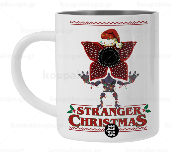 Stranger Things Christmas, Λευκή Ανοξείδωτη Μεταλλική Κούπα 450ml - Διπλού Τοιχώματος