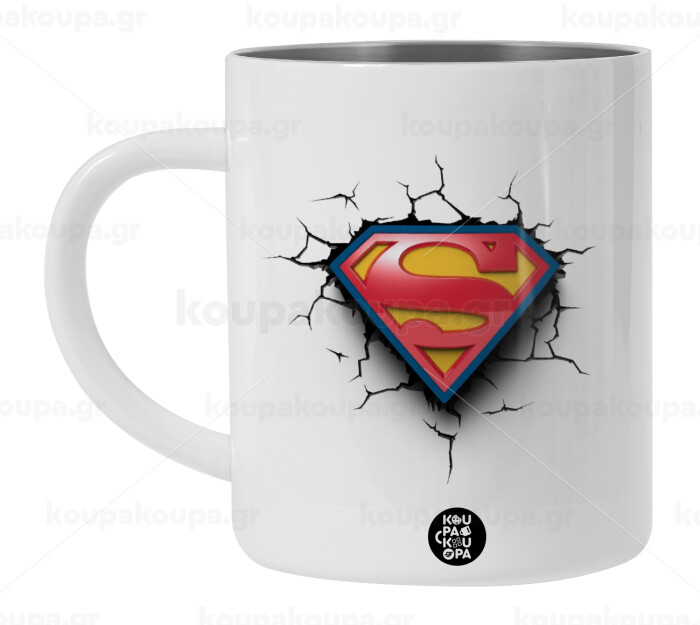 Superman cracked, Λευκή Ανοξείδωτη Μεταλλική Κούπα 450ml - Διπλού Τοιχώματος