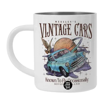 Wizard Flying Car, Λευκή Ανοξείδωτη Μεταλλική Κούπα 450ml - Διπλού Τοιχώματος