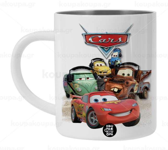 Αυτοκίνητα, Λευκή Ανοξείδωτη Μεταλλική Κούπα 450ml - Διπλού Τοιχώματος
