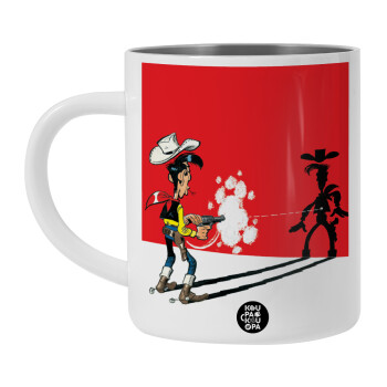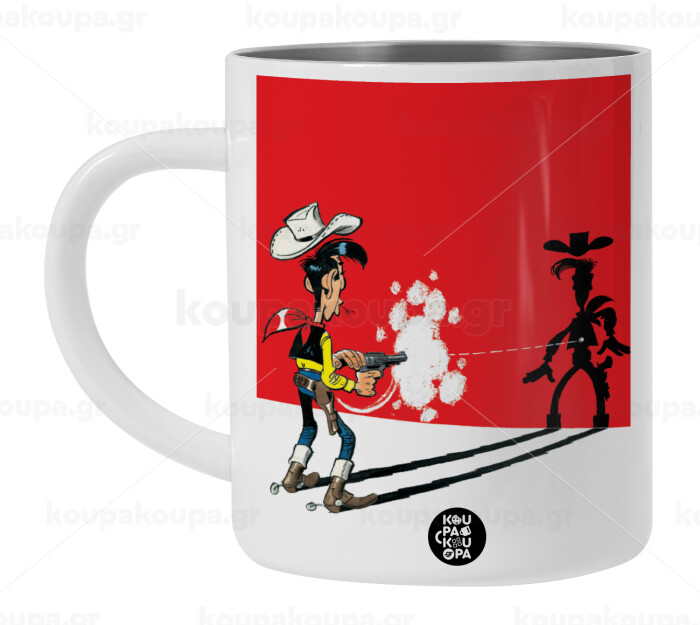 Λούκυ Λουκ σκιές, Λευκή Ανοξείδωτη Μεταλλική Κούπα 450ml - Διπλού Τοιχώματος