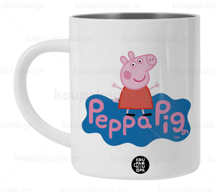 Πέππα το γουρουνάκι μπλε με όνομα, Λευκή Ανοξείδωτη Μεταλλική Κούπα 450ml - Διπλού Τοιχώματος