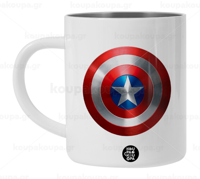 Captain America, Λευκή Ανοξείδωτη Μεταλλική Κούπα 450ml - Διπλού Τοιχώματος