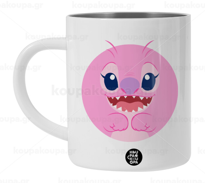 Lilo & Stitch Angel pink, Λευκή Ανοξείδωτη Μεταλλική Κούπα 450ml - Διπλού Τοιχώματος