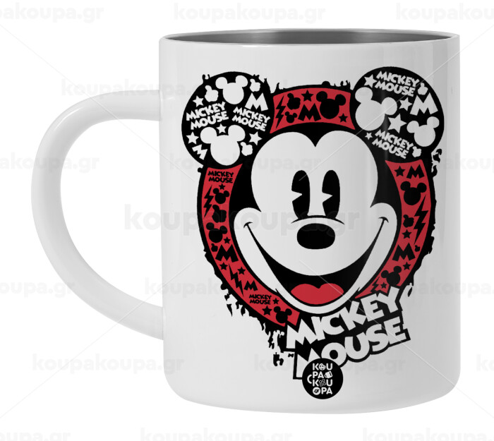 Mickey Mouse, Λευκή Ανοξείδωτη Μεταλλική Κούπα 450ml - Διπλού Τοιχώματος