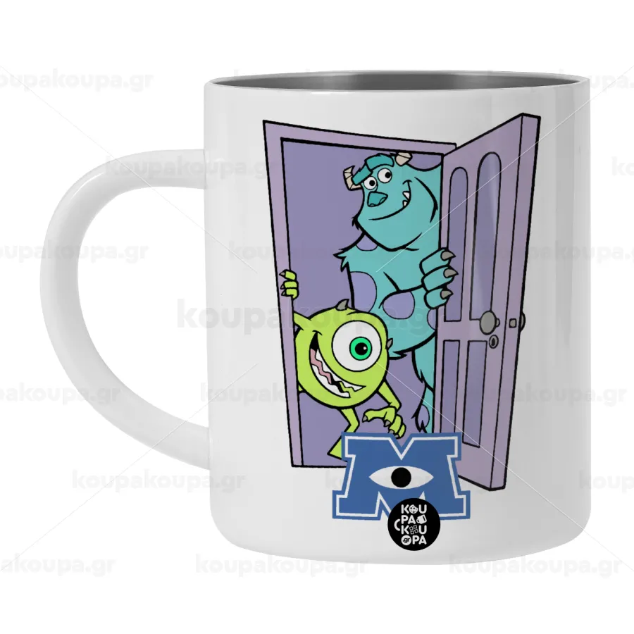 Monster inc, Λευκή Ανοξείδωτη Μεταλλική Κούπα 450ml - Διπλού Τοιχώματος