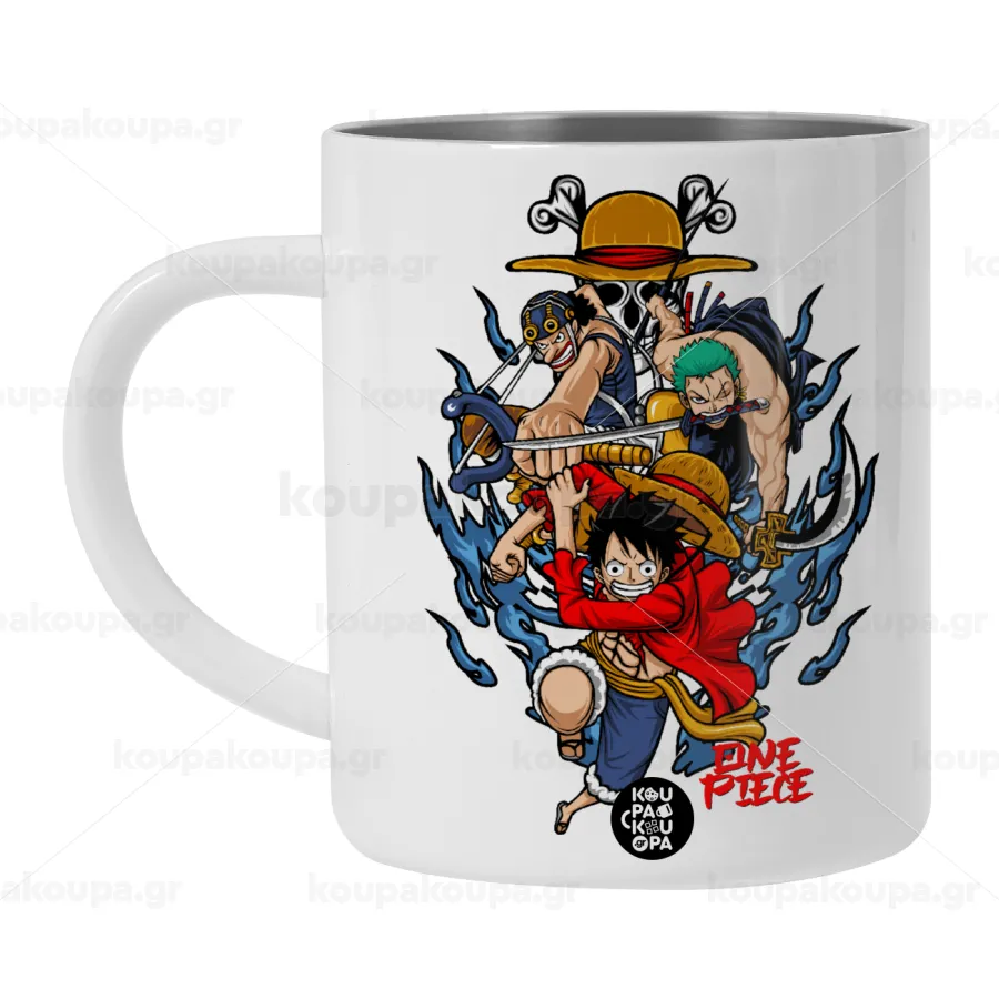 One Piece, Λευκή Ανοξείδωτη Μεταλλική Κούπα 450ml - Διπλού Τοιχώματος