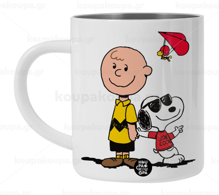 Snoopy & Joe, Λευκή Ανοξείδωτη Μεταλλική Κούπα 450ml - Διπλού Τοιχώματος