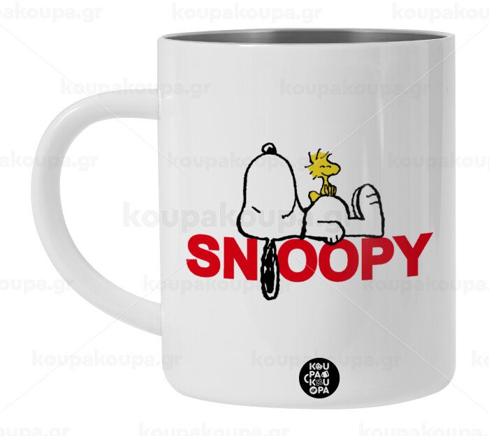 Snoopy sleep, Λευκή Ανοξείδωτη Μεταλλική Κούπα 450ml - Διπλού Τοιχώματος
