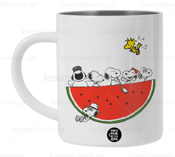 Snoopy summer, Λευκή Ανοξείδωτη Μεταλλική Κούπα 450ml - Διπλού Τοιχώματος