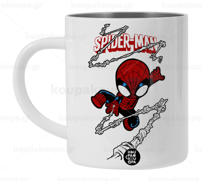 Spiderman kid, Λευκή Ανοξείδωτη Μεταλλική Κούπα 450ml - Διπλού Τοιχώματος