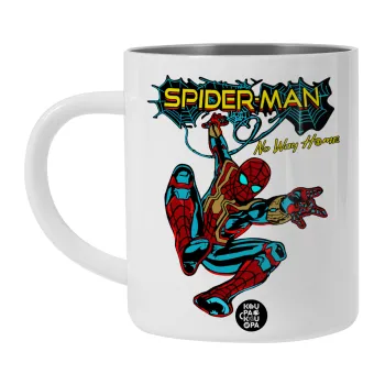 Spiderman no way home, Λευκή Ανοξείδωτη Μεταλλική Κούπα 450ml - Διπλού Τοιχώματος