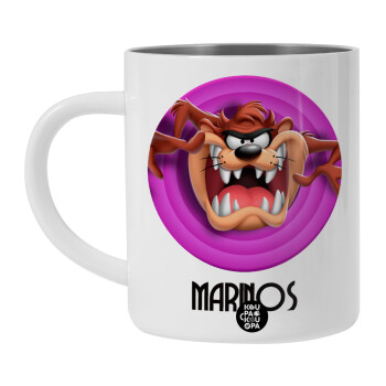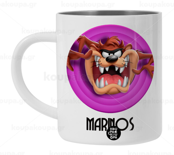 Taz, Λευκή Ανοξείδωτη Μεταλλική Κούπα 450ml - Διπλού Τοιχώματος
