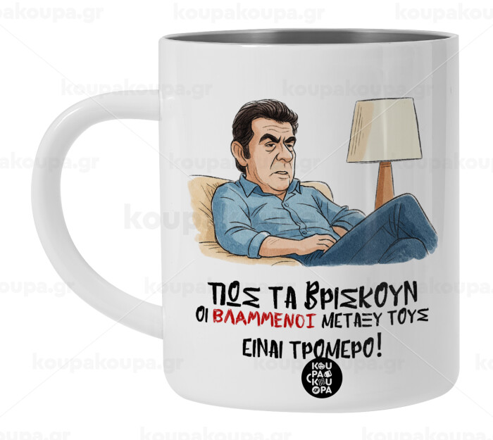 ΠΩΣ ΤΑ ΒΡΙΣΚΟΥΝ ΟΙ ΒΛΑ....ΝΟΙ ΜΕΤΑΞΥ ΤΟΥΣ, ΕΙΝΑΙ ΤΡΟΜΕΡΟ!!!, Λευκή Ανοξείδωτη Μεταλλική Κούπα 450ml - Διπλού Τοιχώματος