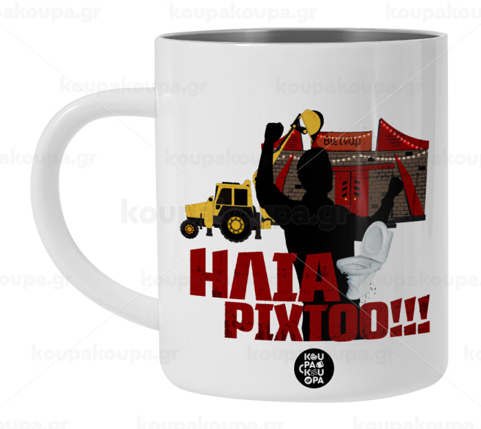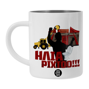 Ηλία ρίχτο!, Λευκή Ανοξείδωτη Μεταλλική Κούπα 450ml - Διπλού Τοιχώματος
