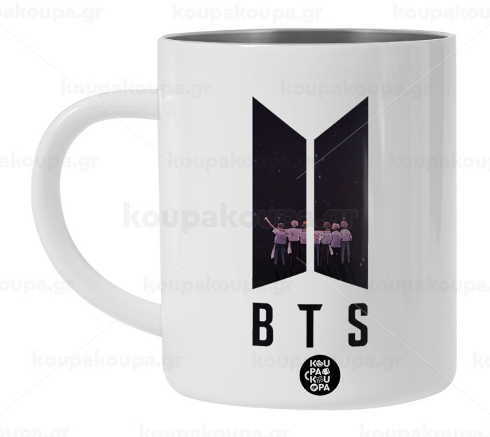 BTS, Λευκή Ανοξείδωτη Μεταλλική Κούπα 450ml - Διπλού Τοιχώματος