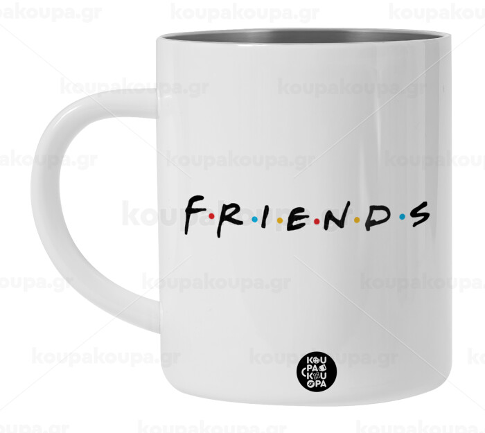 Friends, Λευκή Ανοξείδωτη Μεταλλική Κούπα 450ml - Διπλού Τοιχώματος