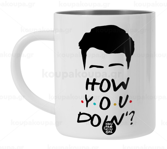 Friends how you doin?, Λευκή Ανοξείδωτη Μεταλλική Κούπα 450ml - Διπλού Τοιχώματος