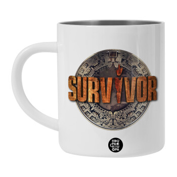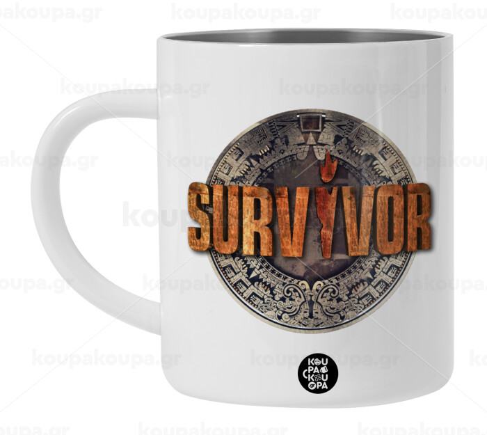 Survivor, Λευκή Ανοξείδωτη Μεταλλική Κούπα 450ml - Διπλού Τοιχώματος