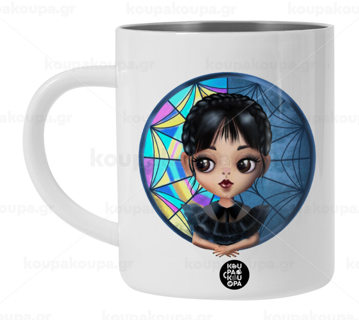 Wednesday big eyes, Λευκή Ανοξείδωτη Μεταλλική Κούπα 450ml - Διπλού Τοιχώματος