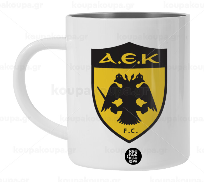 ΑΕΚ, Λευκή Ανοξείδωτη Μεταλλική Κούπα 450ml - Διπλού Τοιχώματος