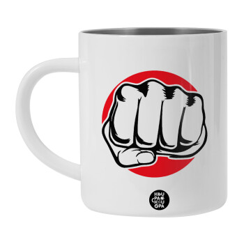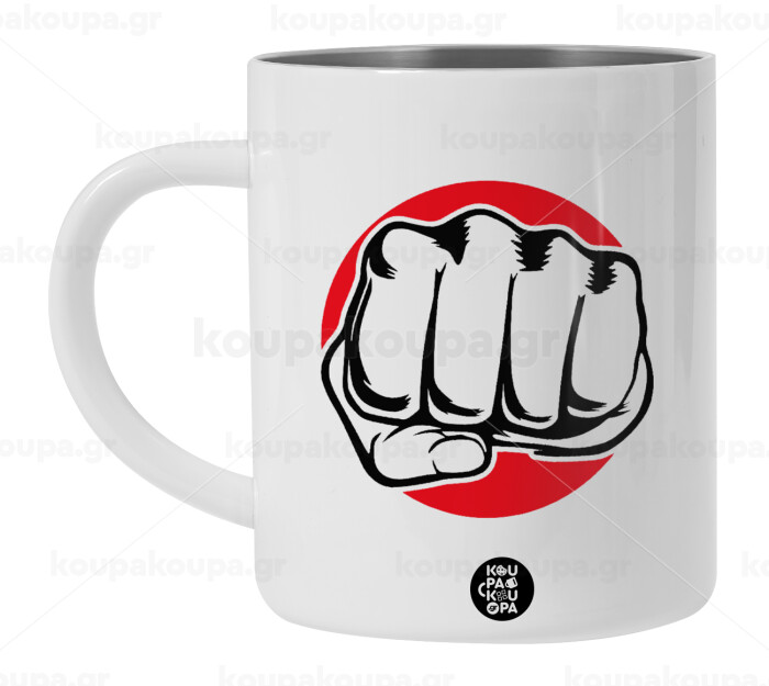 Γροθιά (punch), Λευκή Ανοξείδωτη Μεταλλική Κούπα 450ml - Διπλού Τοιχώματος