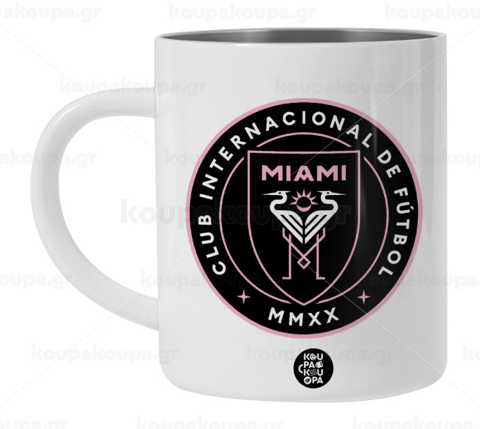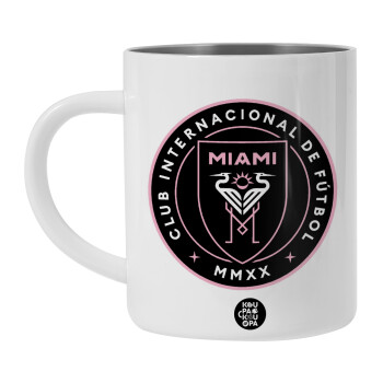 Ίντερ Μαϊάμι (Inter Miami CF), Λευκή Ανοξείδωτη Μεταλλική Κούπα 450ml - Διπλού Τοιχώματος