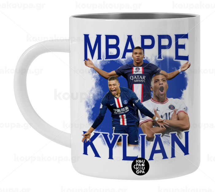 Kylian mbappe, Λευκή Ανοξείδωτη Μεταλλική Κούπα 450ml - Διπλού Τοιχώματος