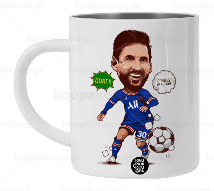 Lionel Messi drawing, Λευκή Ανοξείδωτη Μεταλλική Κούπα 450ml - Διπλού Τοιχώματος