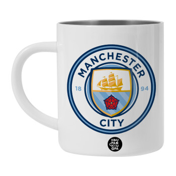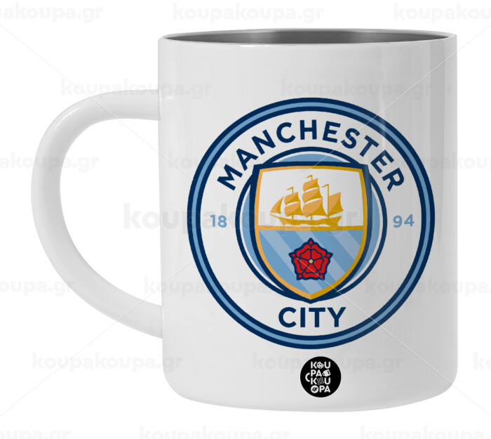 Manchester City FC , Λευκή Ανοξείδωτη Μεταλλική Κούπα 450ml - Διπλού Τοιχώματος