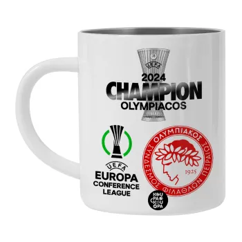 Olympiacos UEFA Europa Conference League Champion 2024, Λευκή Ανοξείδωτη Μεταλλική Κούπα 450ml - Διπλού Τοιχώματος
