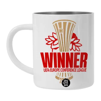 Europa Conference League WINNER, Λευκή Ανοξείδωτη Μεταλλική Κούπα 450ml - Διπλού Τοιχώματος