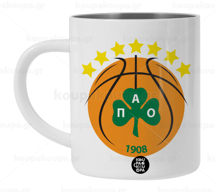 ΠΑΟ BC, Λευκή Ανοξείδωτη Μεταλλική Κούπα 450ml - Διπλού Τοιχώματος